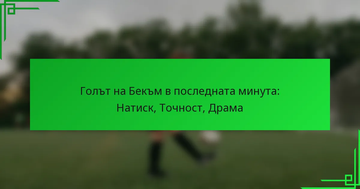 Голът на Дейвид Бекъм в последната минута, отбелязан по време на решаващ мач, обобщава интензивния натиск и драма на футбола с високи залози. Този момент не само че демонстрира прецизността на Бекъм, но и подчертава значението на играта в контекста на турнира.